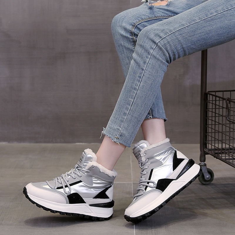 Stijl en comfort komen samen in deze winterschoenen voor dames, gemaakt voor wie op zoek is naar veelzijdig schoeisel dat mode en bescherming combineert op koude dagen. Met hun moderne, sportieve ontwerp zijn ze perfect om je routine bij te houden en er toch stijlvol uit te zien.