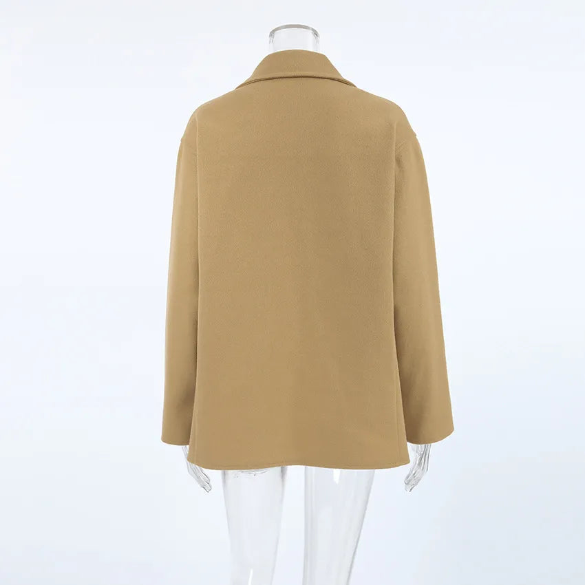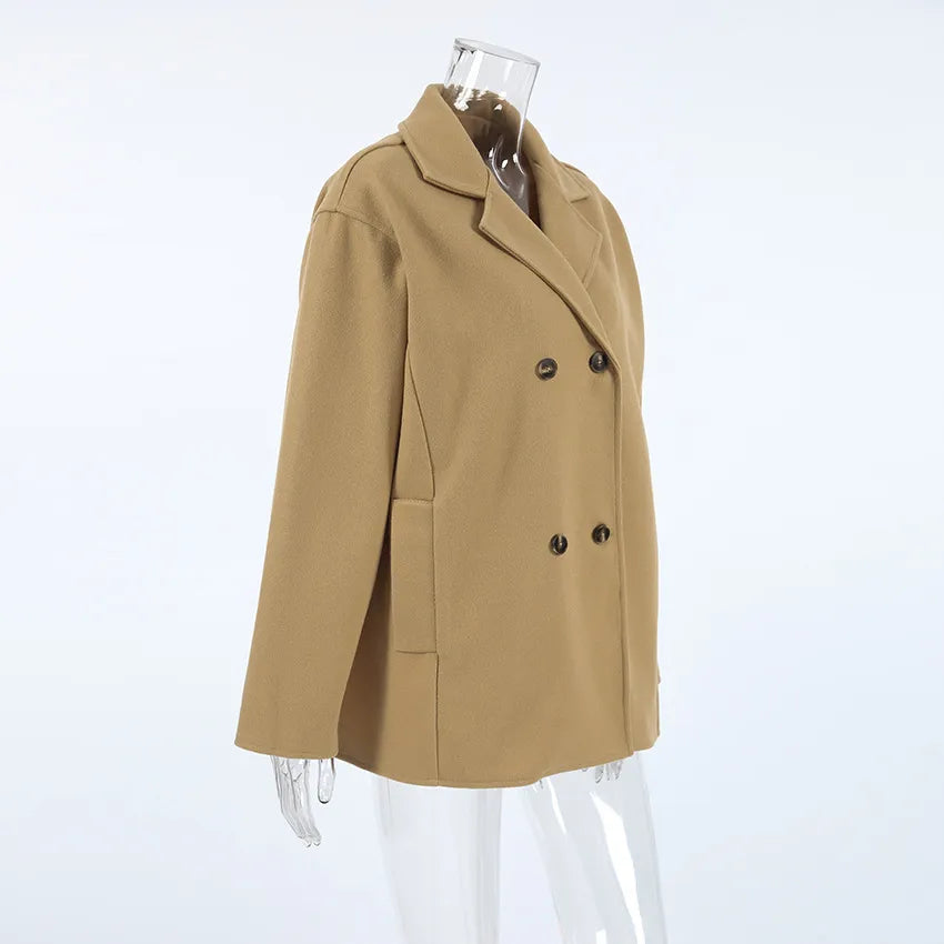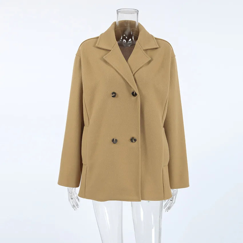 Gali elegante bruine wollen jas met dubbele rij knopen, halflang