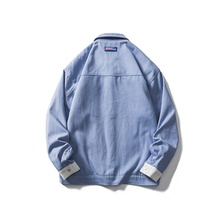 Met drukknoopsluiting, borstzakken met klep en omgeslagen manchetten. Contrasterende stiksels en colour blocking geven het een moderne, artistieke uitstraling.