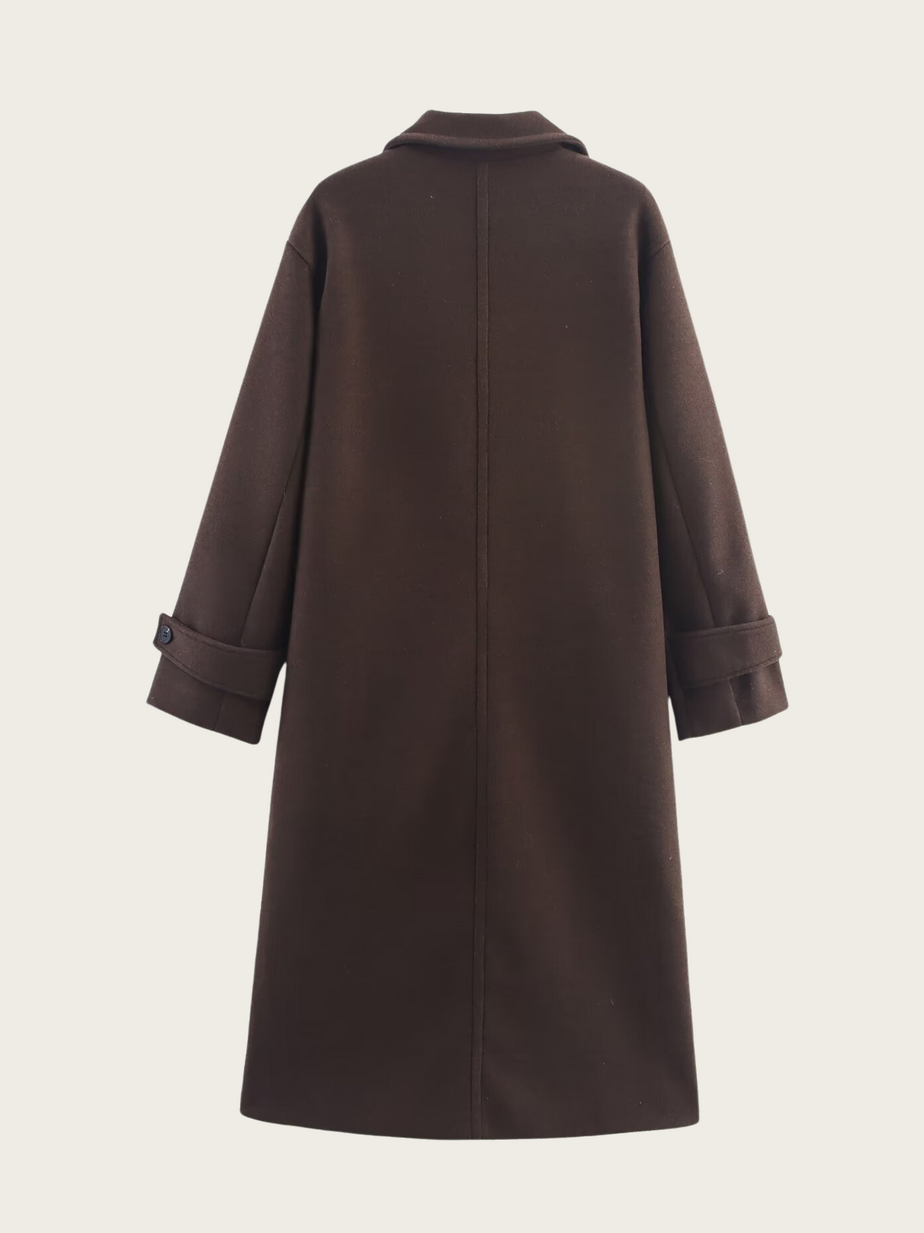 Deze lange jas heeft een elegant en veelzijdig silhouet, ontworpen om je dag in tijdloze stijl te begeleiden. De rechte snit zorgt voor een natuurlijke drapering en past bij zowel formele als ontspannen outfits.