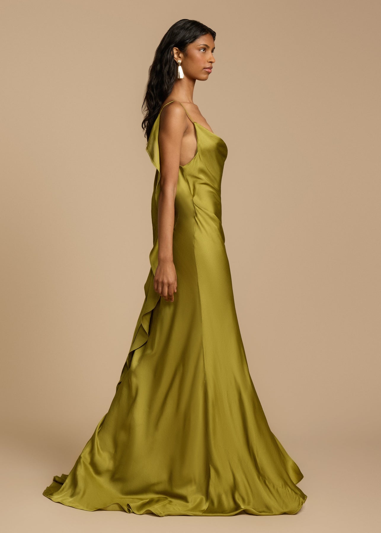 Verblind bij elke gelegenheid in Ashley, een jurk ontworpen voor onvergetelijke avonden. Deze jurk is gemaakt van prachtige viscose in een gewaagde pistachekleur en is schuin gesneden om het silhouet te omhullen met een onberispelijke drapering.