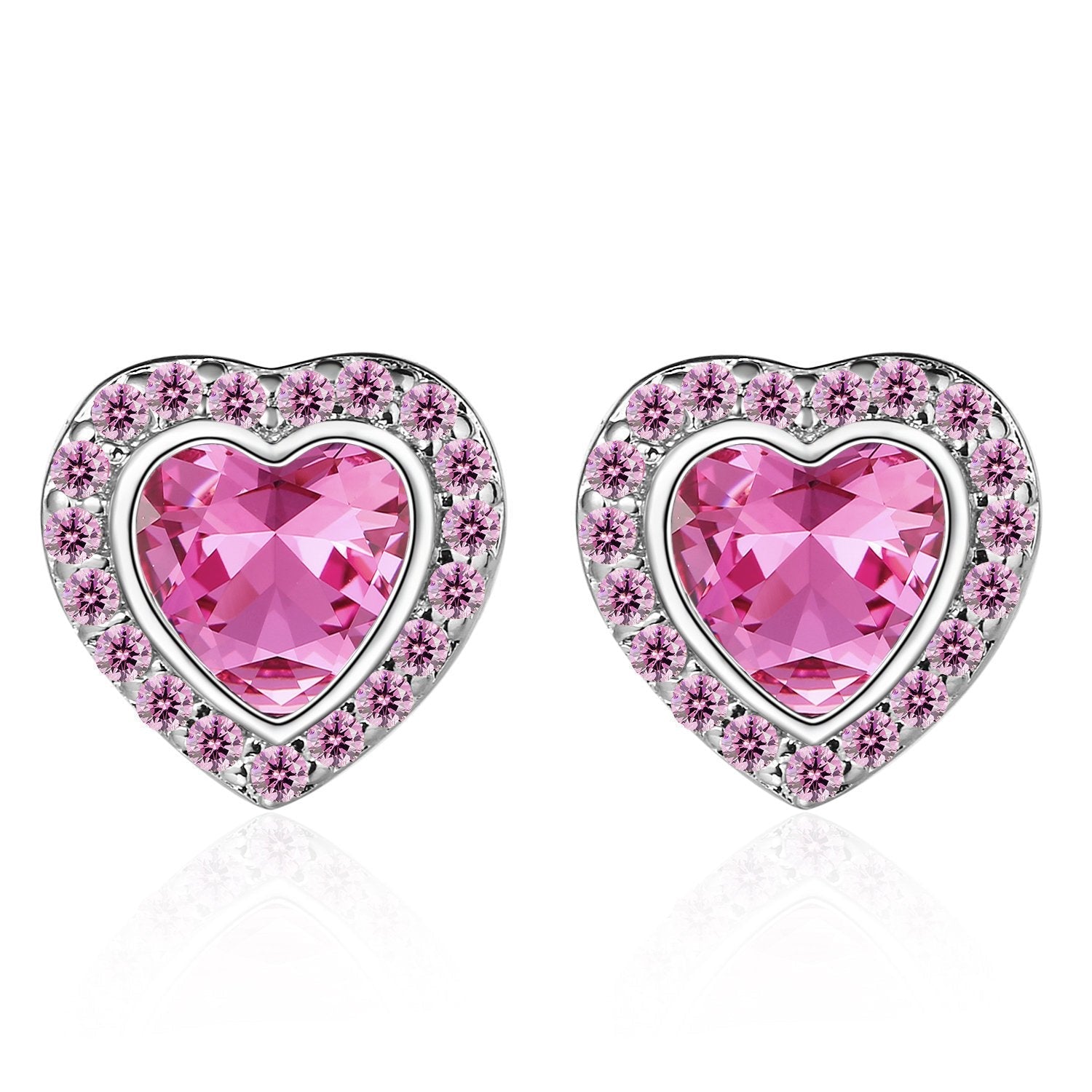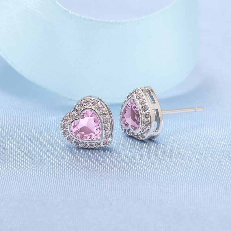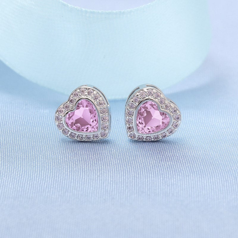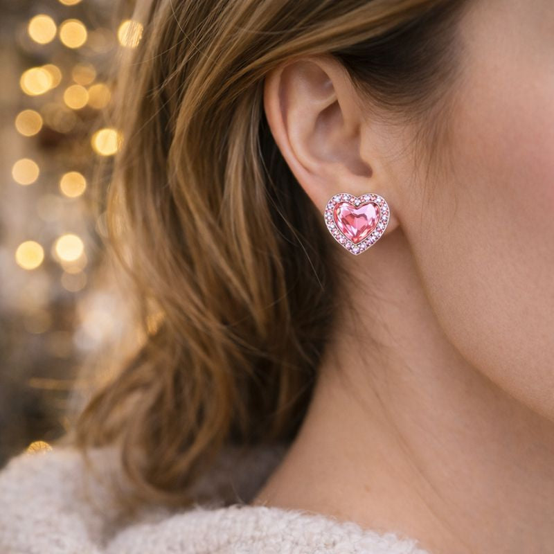 Damesoorbellen met een hartontwerp, gemaakt met een gefacetteerde middensteen die helderheid en visuele diepte toevoegt. De omtrek is versierd met kleine, gelijkmatig geïntegreerde fonkelende details, waardoor een evenwichtige en elegante afwerking ontstaat zonder overdreven te zijn.