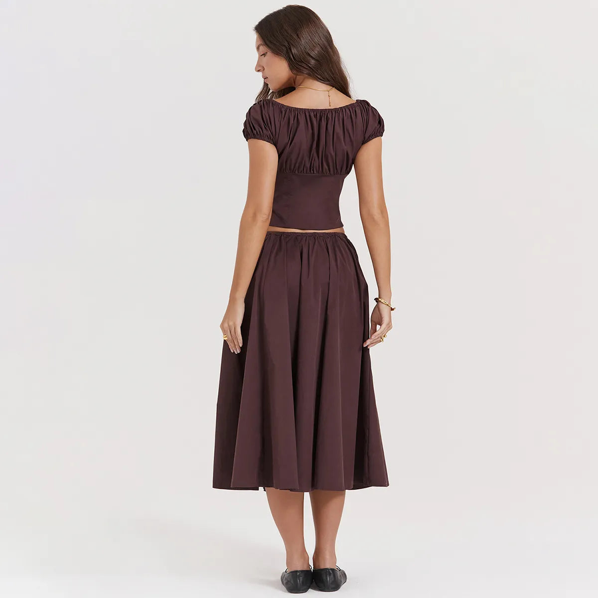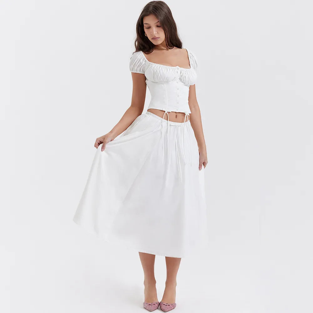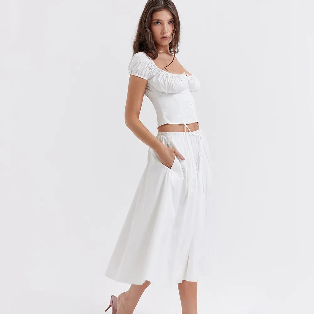 Tania - Vierkante Hals Gewaad Top & Rok Set met Pofmouwen