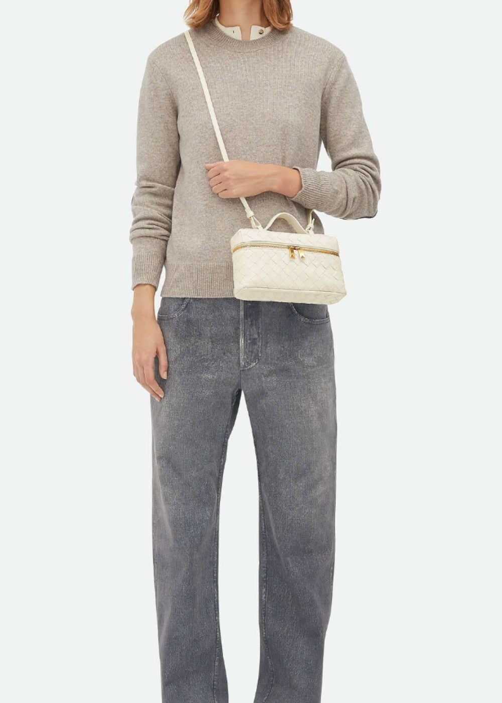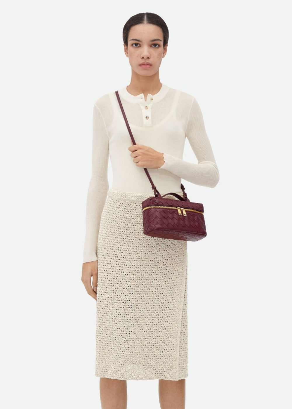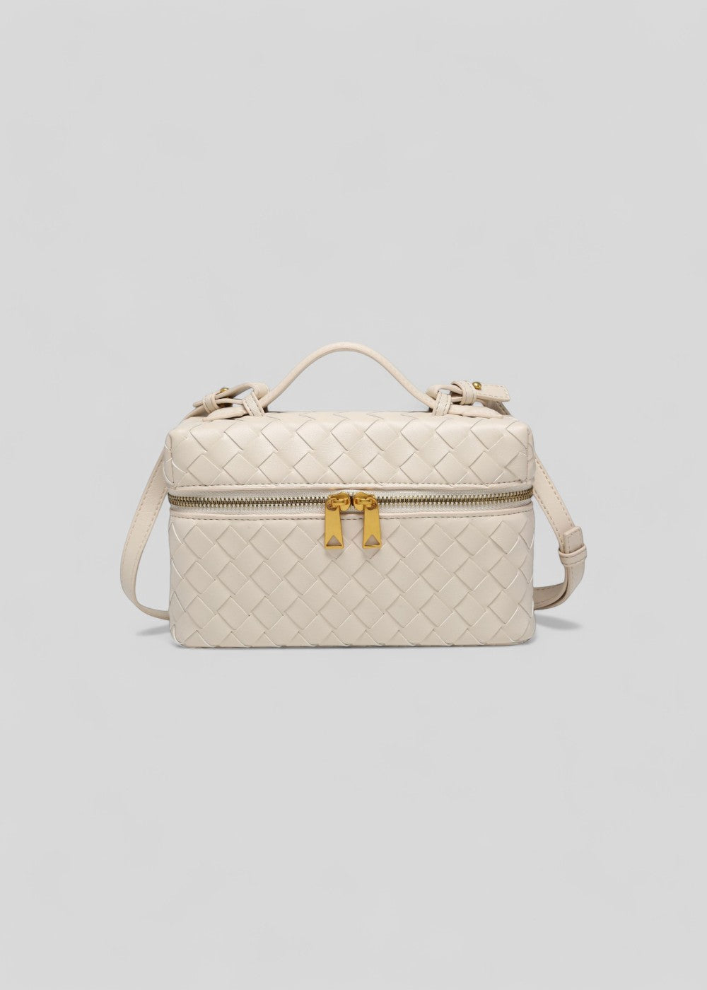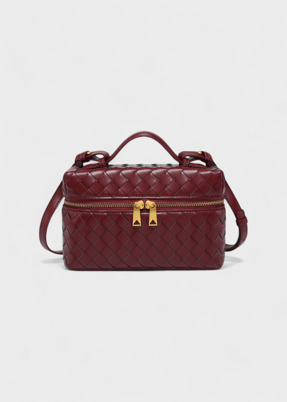 De Valeska tas combineert architectonisch design met tijdloze elegantie. De stevige structuur met gevlochten afwerking geeft de tas uitstraling en distinctie, terwijl de goudkleurige ritssluitingen en het bovenhandvat de look een luxueuze touch geven.